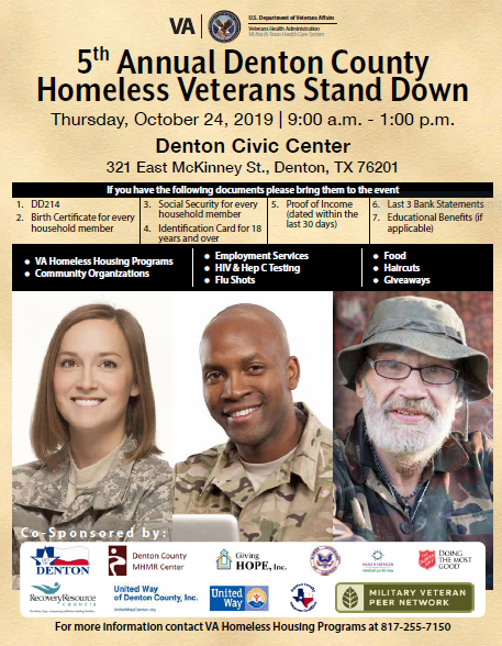 Please help us and let your friends, colleagues and followers know about: Denton County Homeless Veterans Stand Down