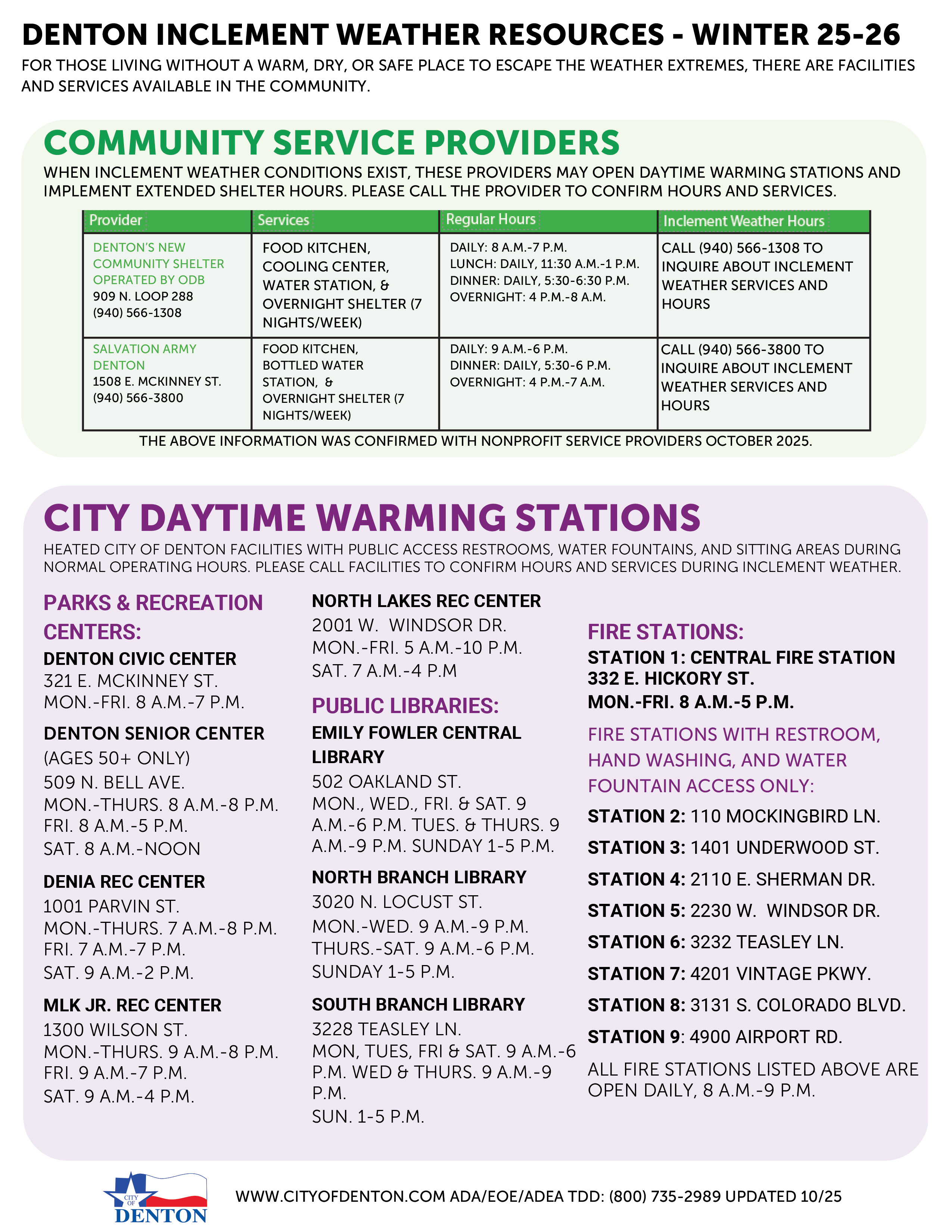 Find additional Inclement Weather Resources in Denton on the City of Denton Website Here >